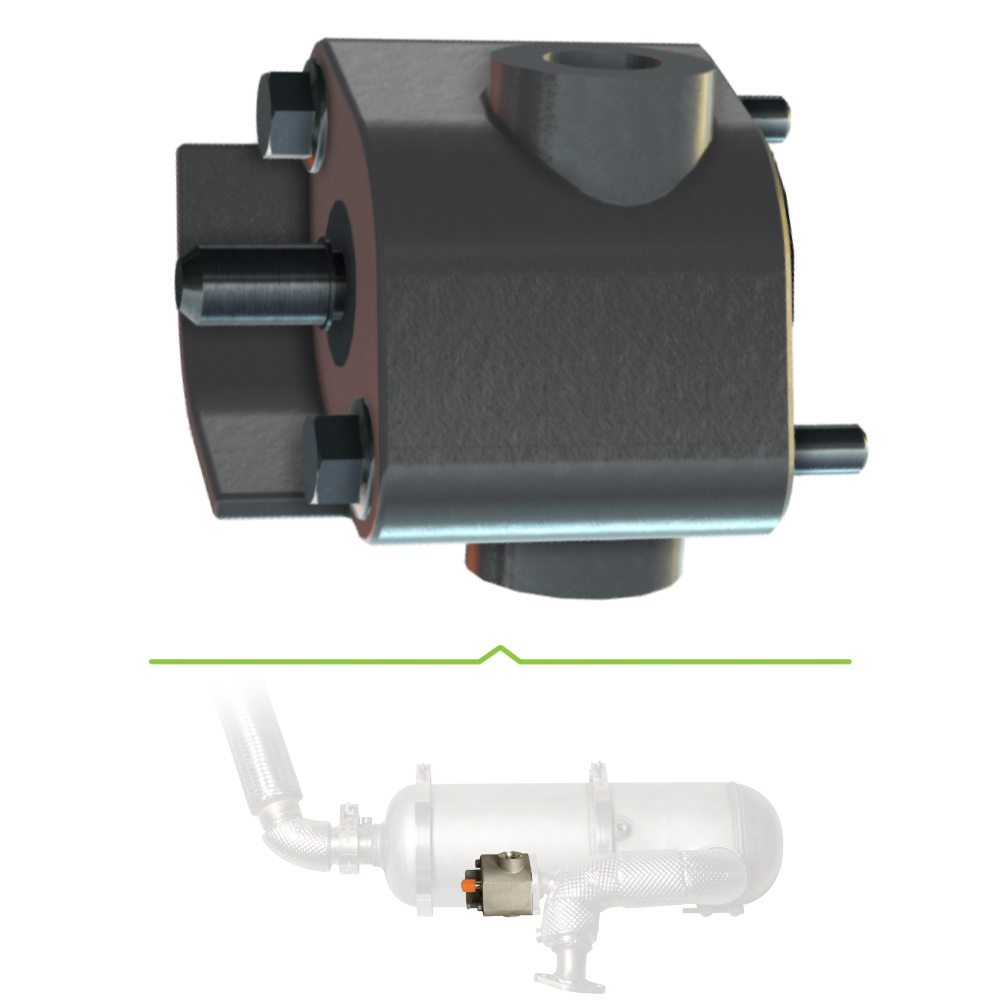 During active regeneration, the doser valve injects a fine mist of fuel into the exhaust stream, where it then ignites on the surface of the DOC to raise the exhaust temperature and oxidize the particulate matter in the CDPF.